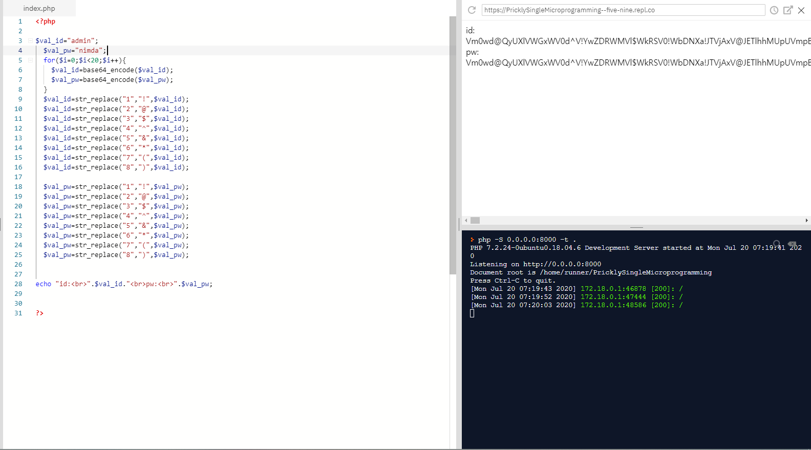 repl.it 사이트에서 php web server 를 사용하여 인코딩을 시켜보았다