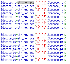 - 각 $decode_id 와 $decode_pw 변수에있는 값의 특수문자들을 숫자로 바꾼다음