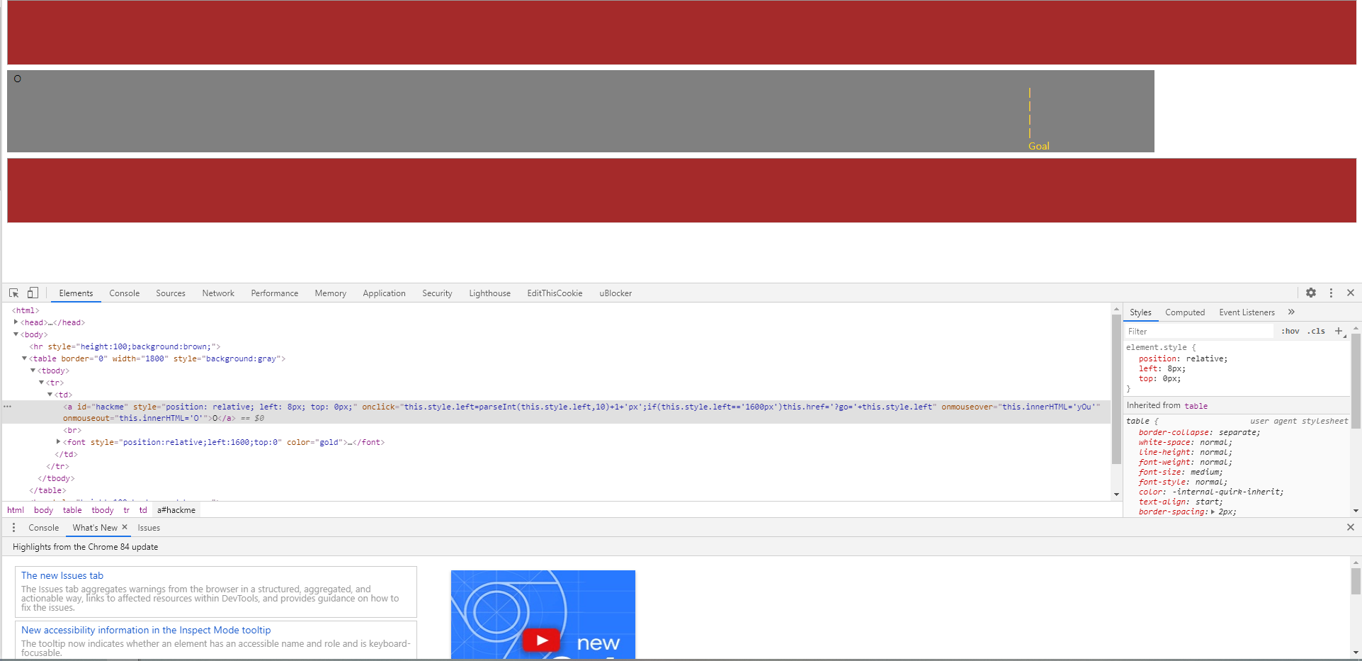 - <a> 태그에 마우스커서를 대면 텍스트가 y0u 로 바뀌게되고 그렇지 않아면 0 으로 바뀌게 되고 클릭을 하면은 1px 씩 left 로 이동을 하는것이다.