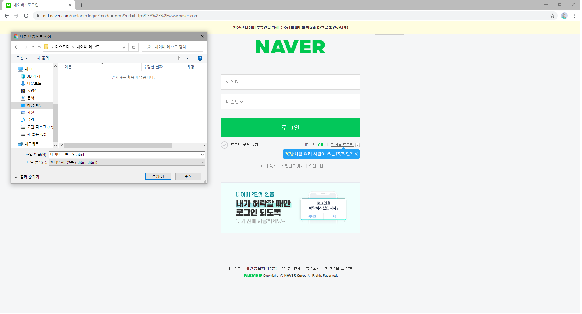 이렇게 저장하라는 창이 뜨게 되면은 저장을 한 다음에 그 위치에 들어가보면은 네이버_로그인.html 이라는것이있을것이다 .