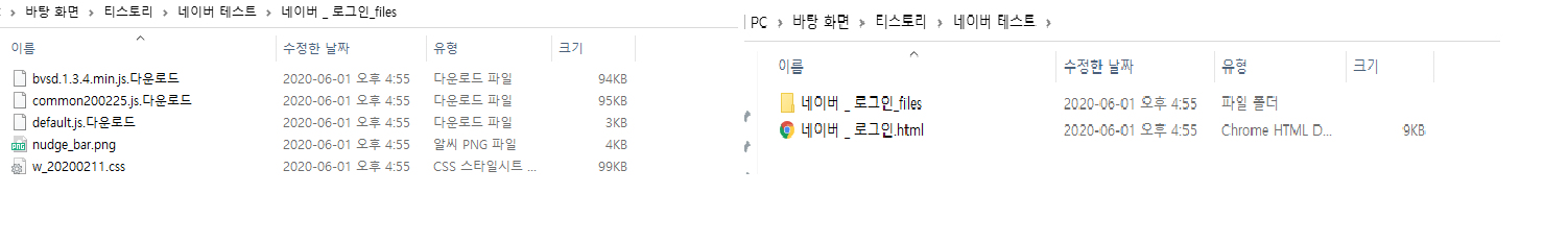 html 파일을 들어가보니 아까 들어갔던 네이버 로그인 화면과 똑같다.