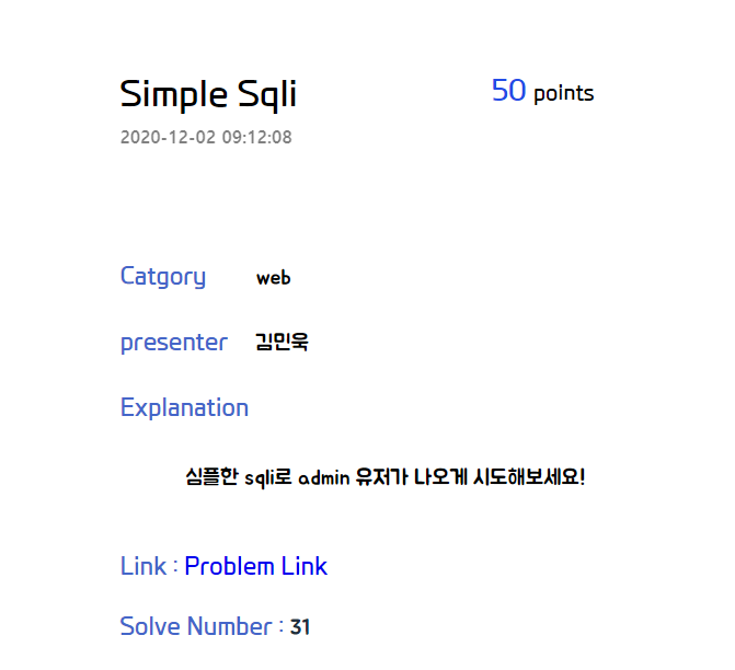 probgame 사이트의 Simple Sqli 문제를 살펴보면