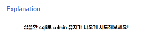 만약 sql injection를 해본적이 있다면 바로 admin유저가 나오는 동시에 참이 되도록 했을것이다.
