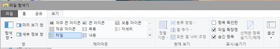 이렇게 파일 홈 공유 보기 라는것이 있다 그러면은 이제 보기 라는것을 눌러주면은