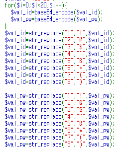 - 각 $decode_id 와 $decode_pw 변수에있는 값의 특수문자들을 숫자로 바꾼다음