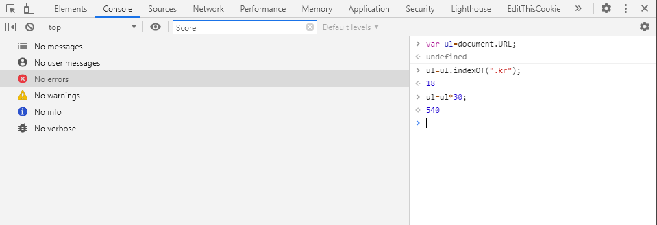 - ul 변수에는 document.URL 값을 넣고 .kr 찾은 반환값 * 30 을 한 값이 본페이지에있는text 입력값과 같다면 클리어가 되는거같다.