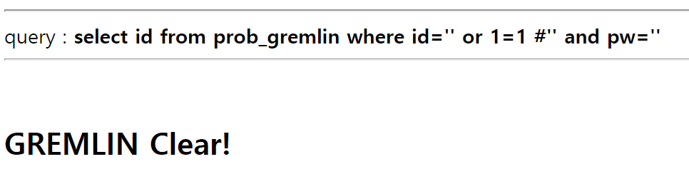 Lord of SQLinjection 문제중 1번문제인 gremlin를 풀어볼것이다.