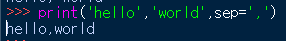 print('hello','world',sep=',')