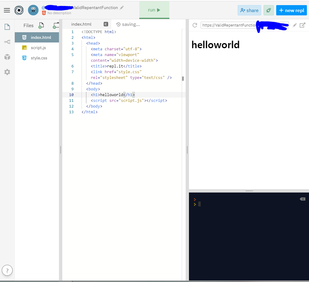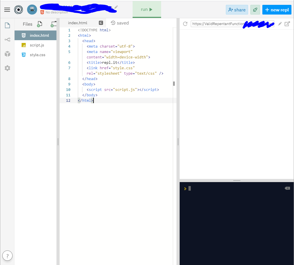 그러면은 이게 Create Repl 이라는것을 눌러주면은 새로운 페이지가 만들어진것이 보일것이다.