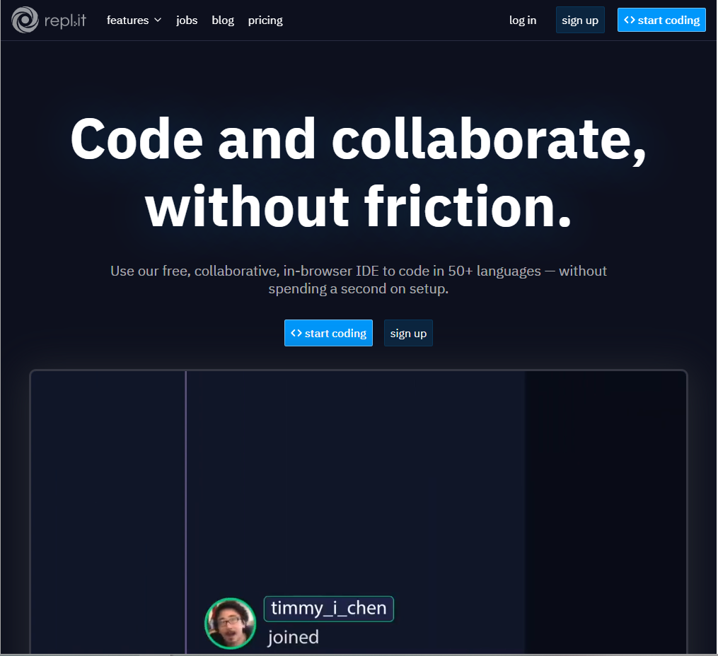 Repl.it is a simple yet powerful online IDE, Editor, Compiler, Interpreter, and REPL. Code, compile, run, and host in 50+ programming languages: Clojure, Haskell, Kotlin (beta), QBasic, Forth, LOLCODE, BrainF, Emoticon, Bloop, Unlambda, JavaScript, CoffeeS