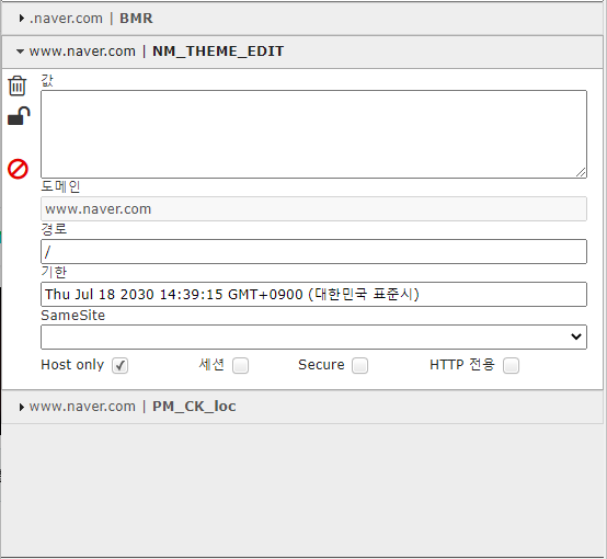 먼저 www.naver.com 에 PM_CK_loc 라는 쿠키 이름에